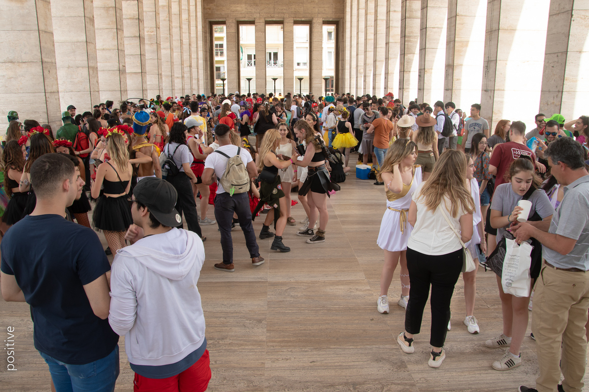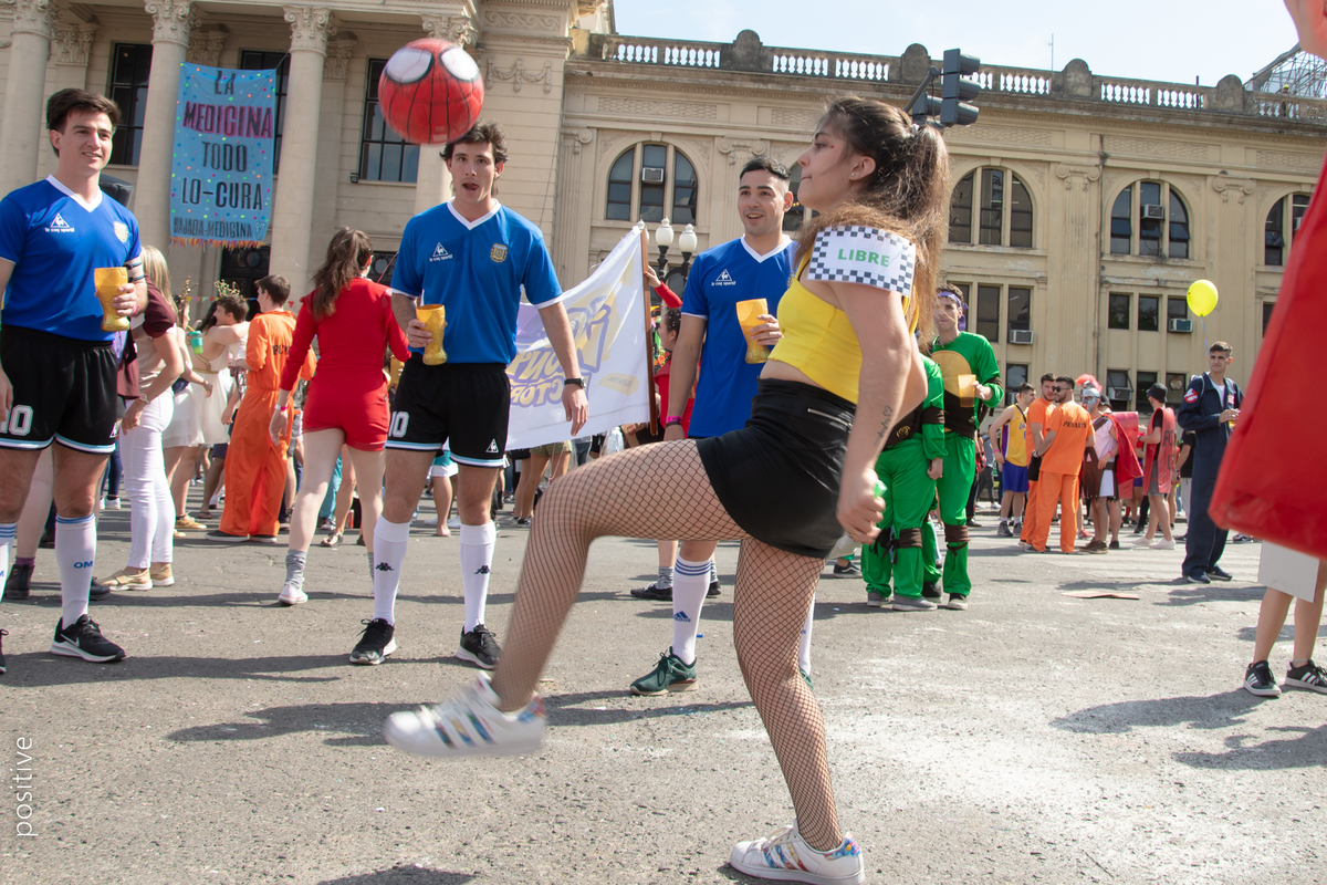 Sobre el mediodía, el contingente de centenares de futuros médicos se trasladó al ritmo de la batucada por calle Córdoba hasta el simbólico Monumento a la Bandera, desde donde partieron al camping en donde continuaría la celebración durante unas horas más.